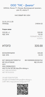 При оплате услуг связи Вы можете получить кассовый чек в Личном кабинете в журнале Платежей.